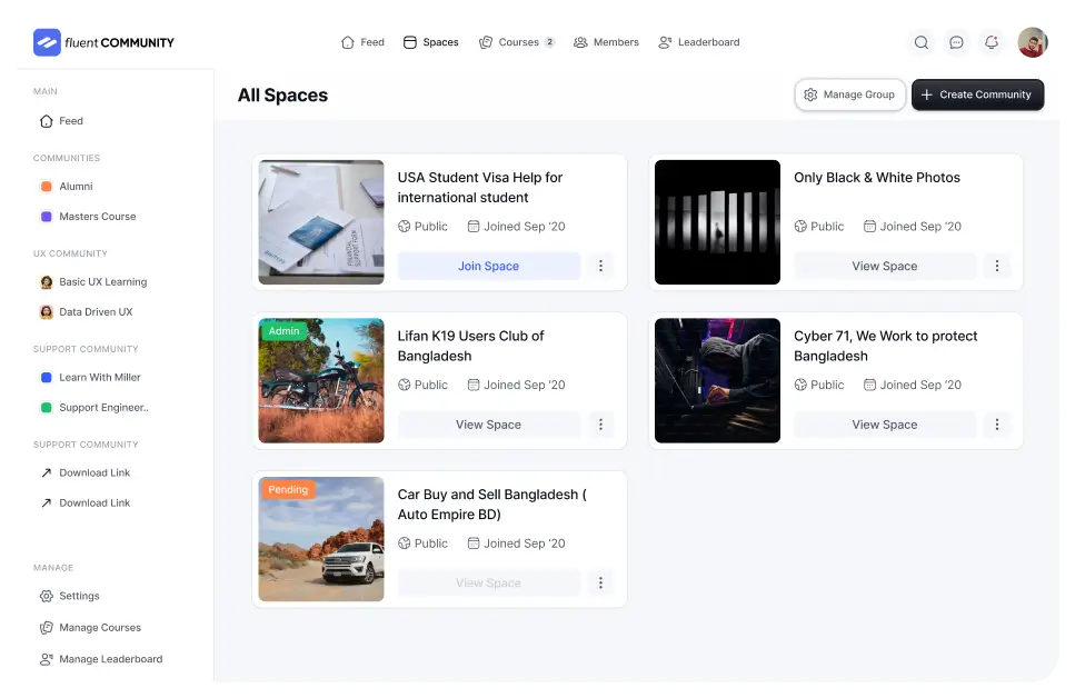 FluentCommunity brings a Circle-like experience to WordPress so you can host your own discussion groups and courses. It is a good choice for coaches and course creators as well as for product owners who want to have a user community off of social media.