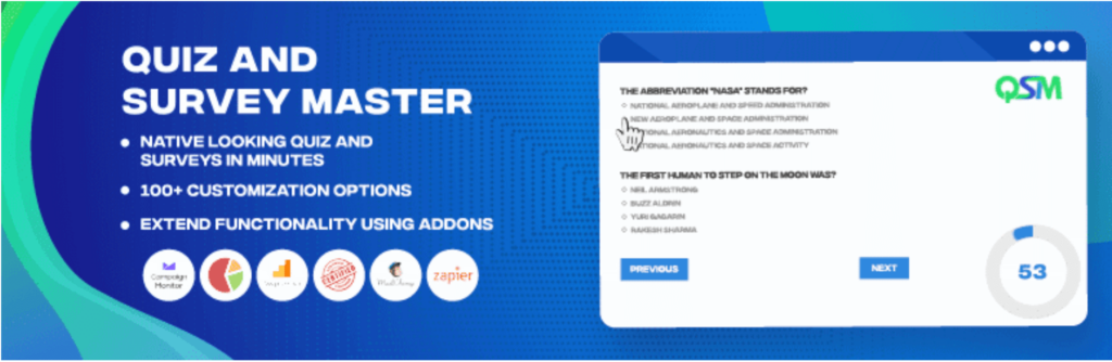 Quiz and Survey Master is a WordPress quiz plugin that is fully responsive and can be used to create any type of quiz. It also has an advanced logic system that can be used to create different types of questions.