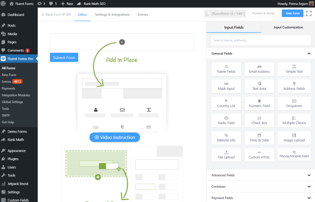 The drag & drop facility is one of the most dynamic features and Fluent Forms plugin allows you to implement this awesome feature in order to add any kind of field you need to have. Using Fluent Forms you can easily rearrange the input fields on your tables.