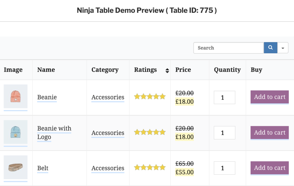 As I said earlier, as a scalable plugin, Ninja Tables comes up with an awesome feature: WooCommerce integration.
