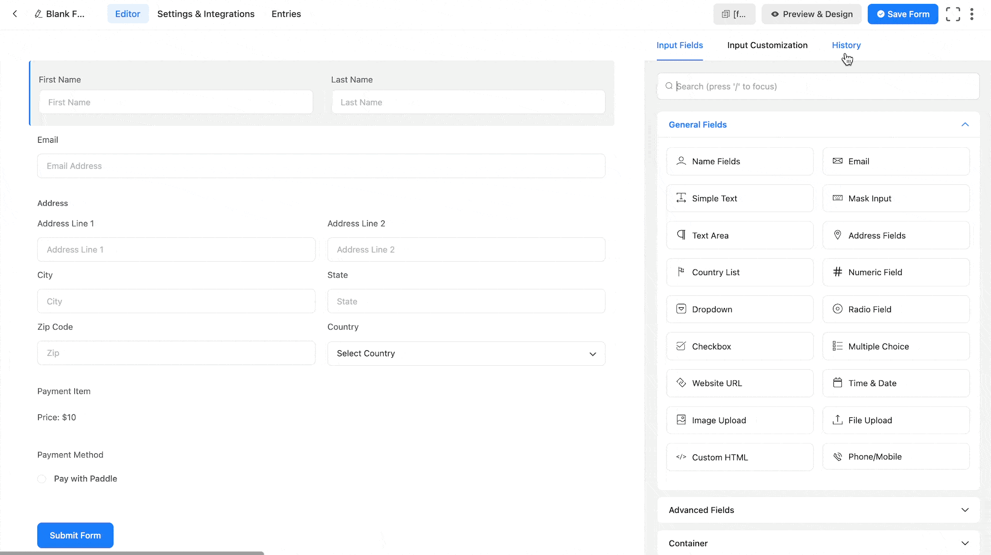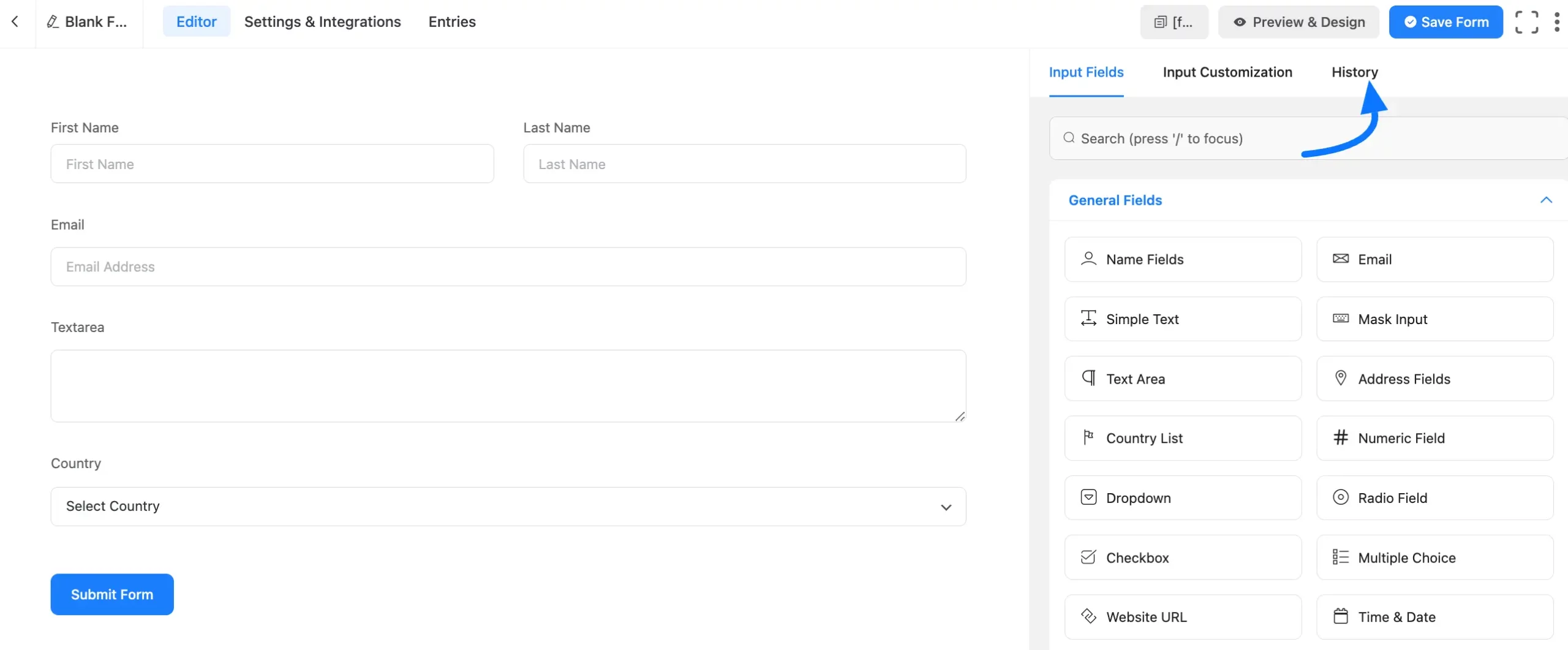 If you’d like to clear your form’s edit history, simply click the Delete icon button in the top-right corner of the History section. Click on the Save Form button to save your all changes.