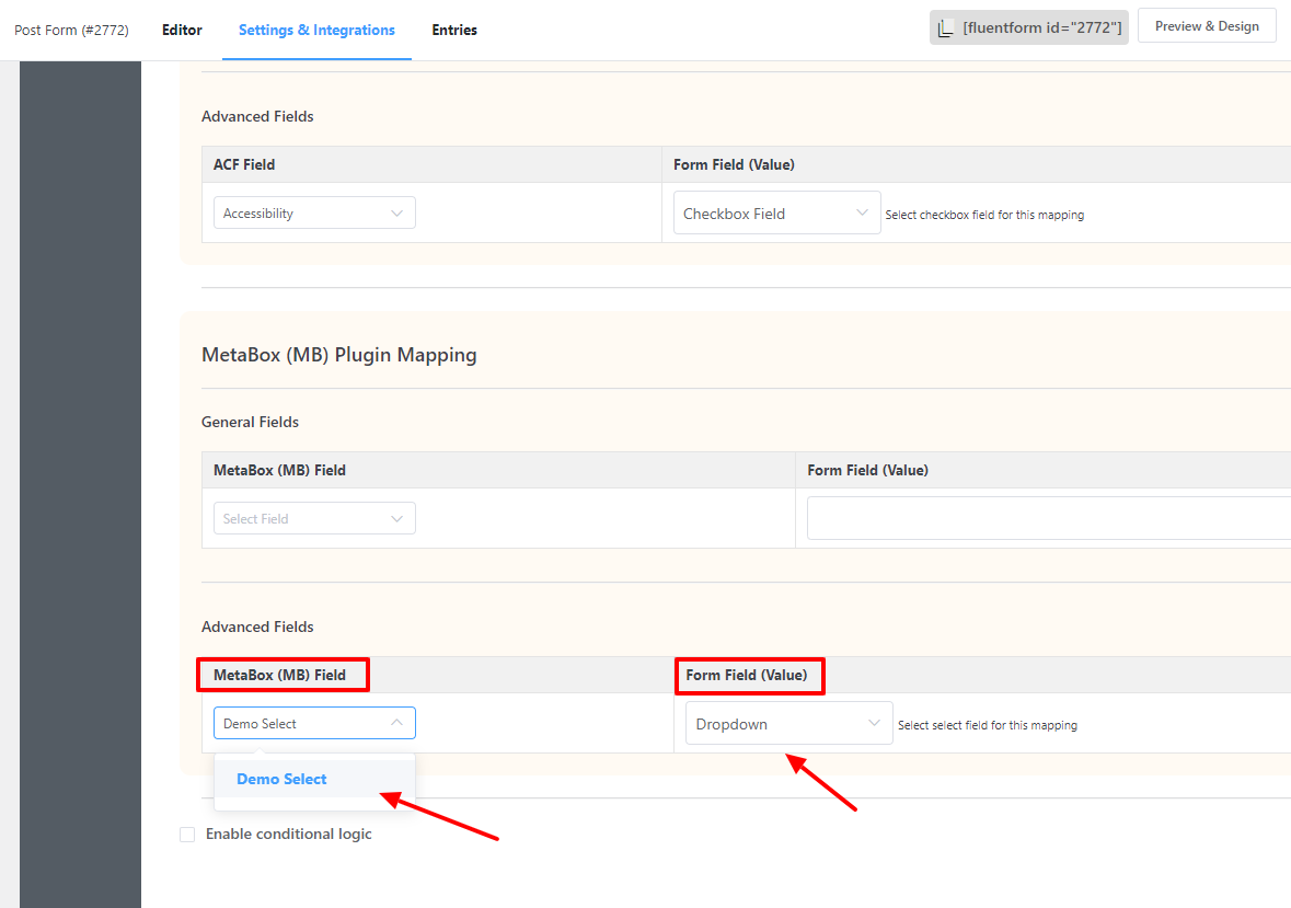 Simply go through this guide on how to integrate MetaBox with Fluent Forms.
