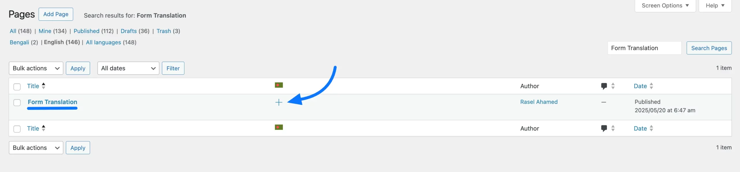 After translating the form fields, you’ll need to translate the page where your Fluent Forms form is embedded. To do this, go to Pages in your WordPress Dashboard and find the page containing the embedded form.