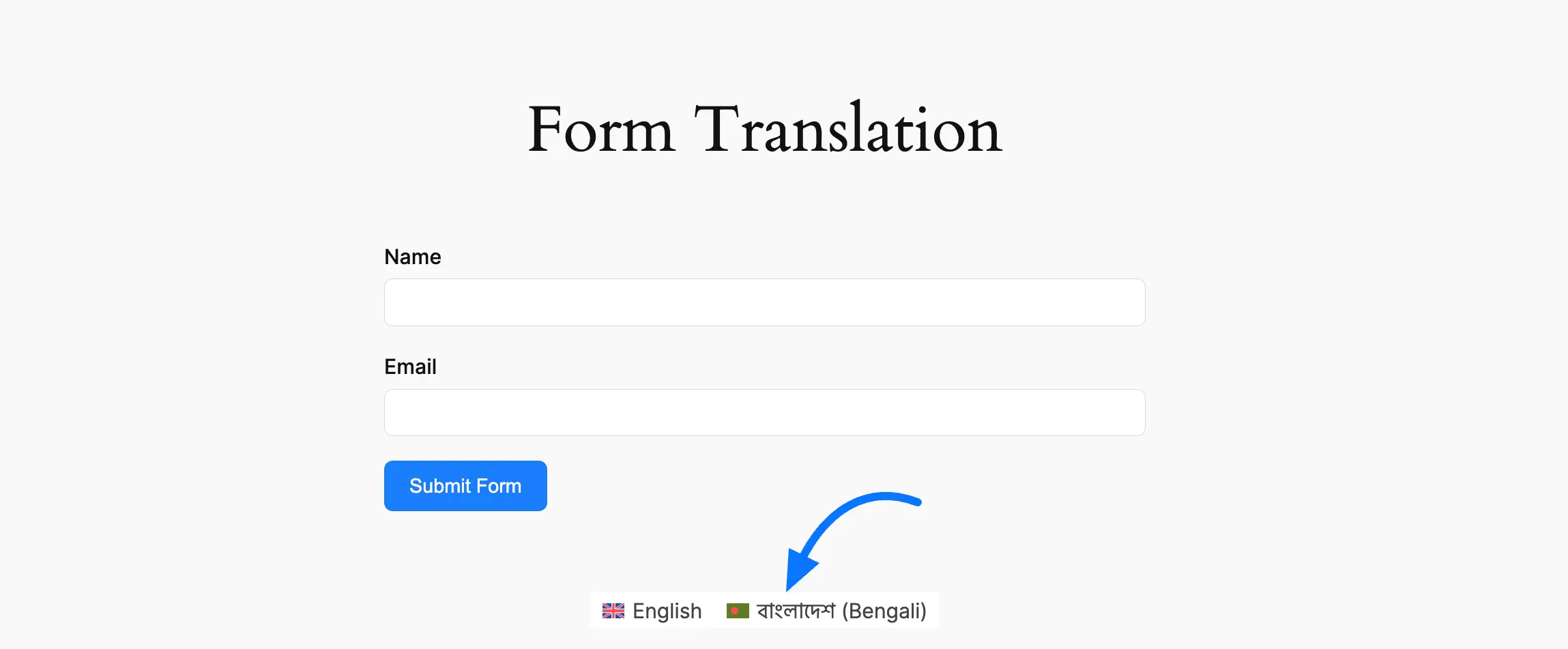 Go to the page where your form is embedded. At the bottom of the page, you’ll see two buttons that WPML adds for language selection. Simply click on the language button you prefer to switch languages.