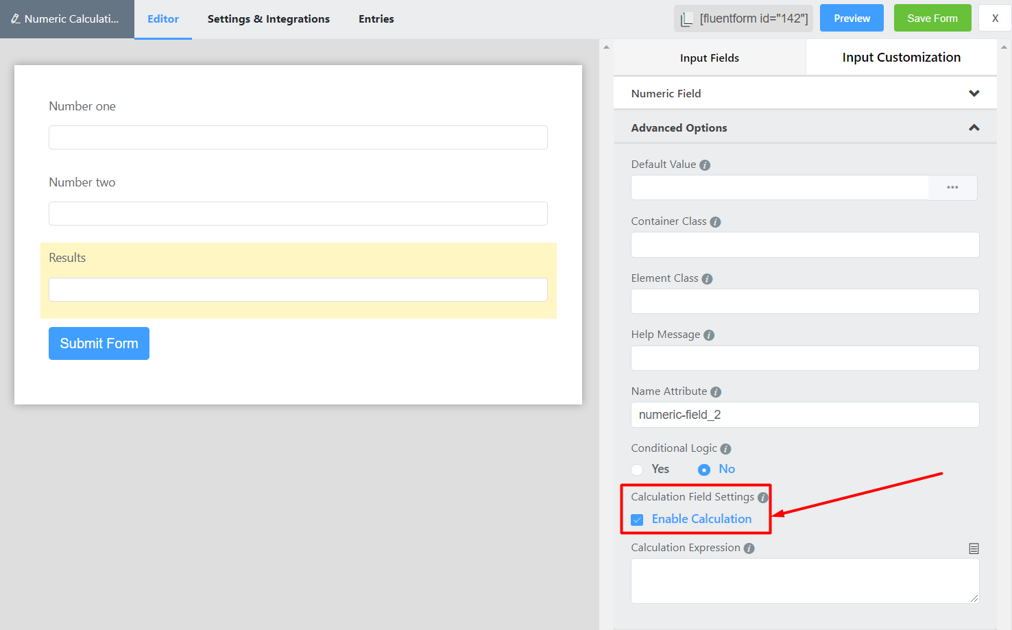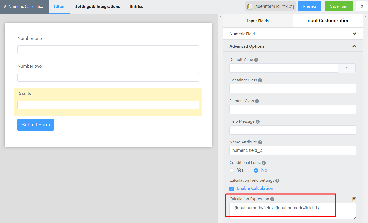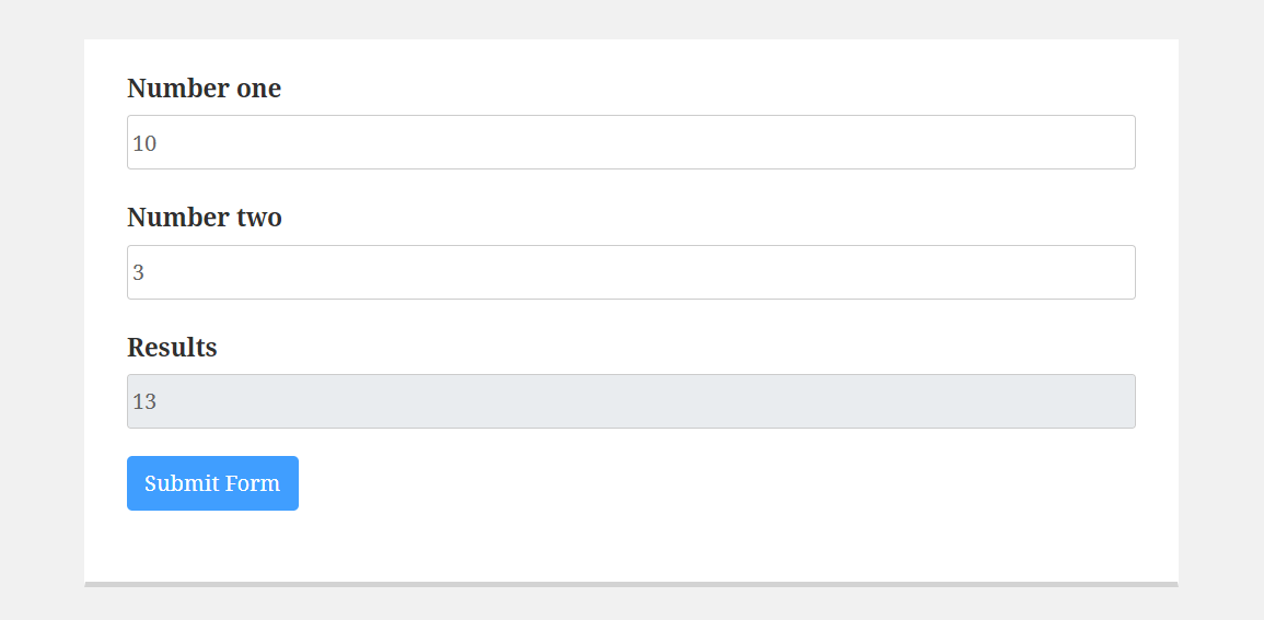 - Now Save the Form and Preview and you will get the result after putting the values in Number one and Number two.
