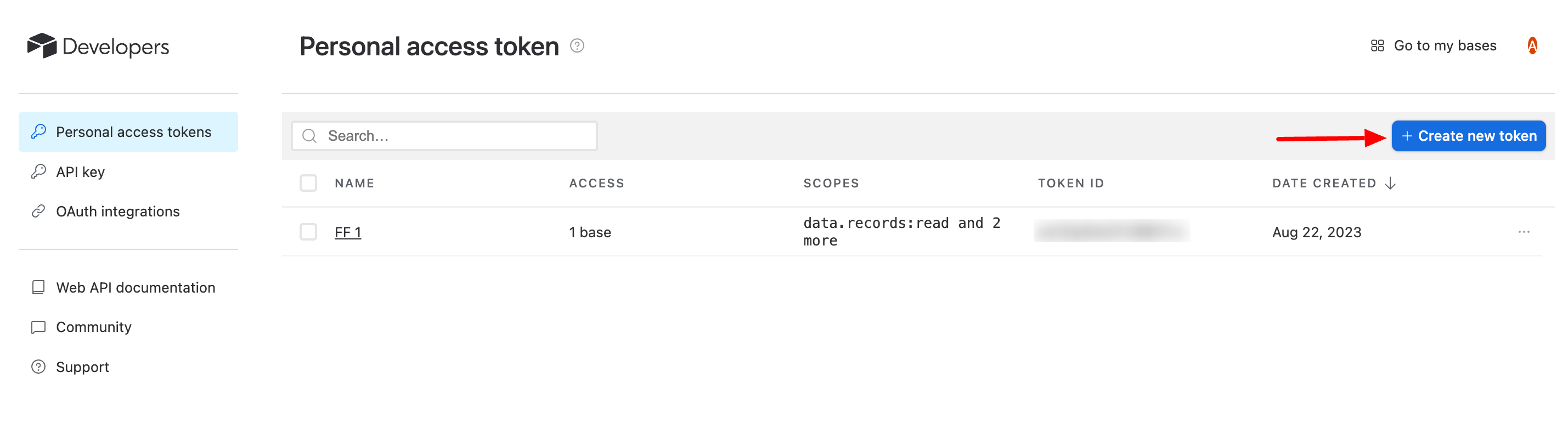 - Go to your Airtable accounts developer dashboard and select the personal token