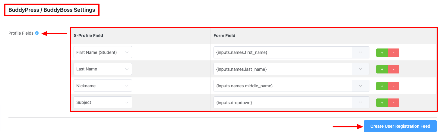 - Configure the fields and map them to the BuddyBoss corresponding fields.