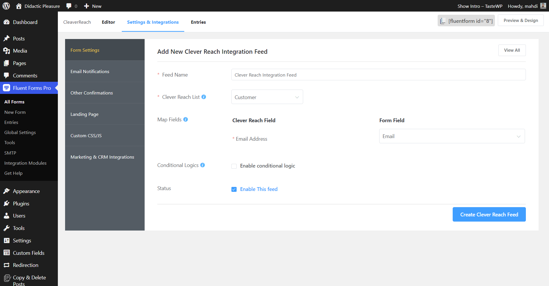Steps to integrate CleverReach with Fluent Forms