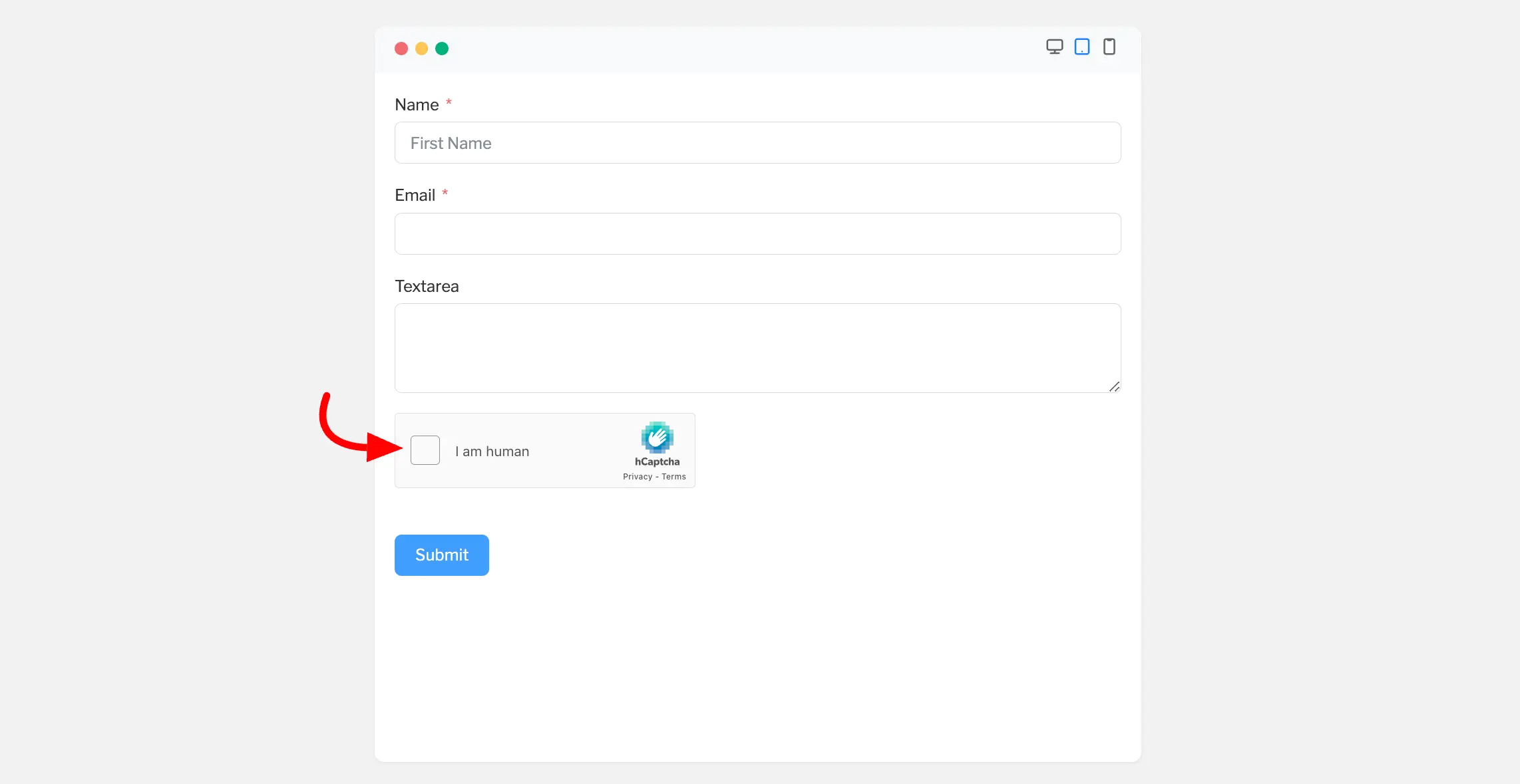 • Save the form when the customization is done. You will be showing hCaptcha in your form like the below screenshot.