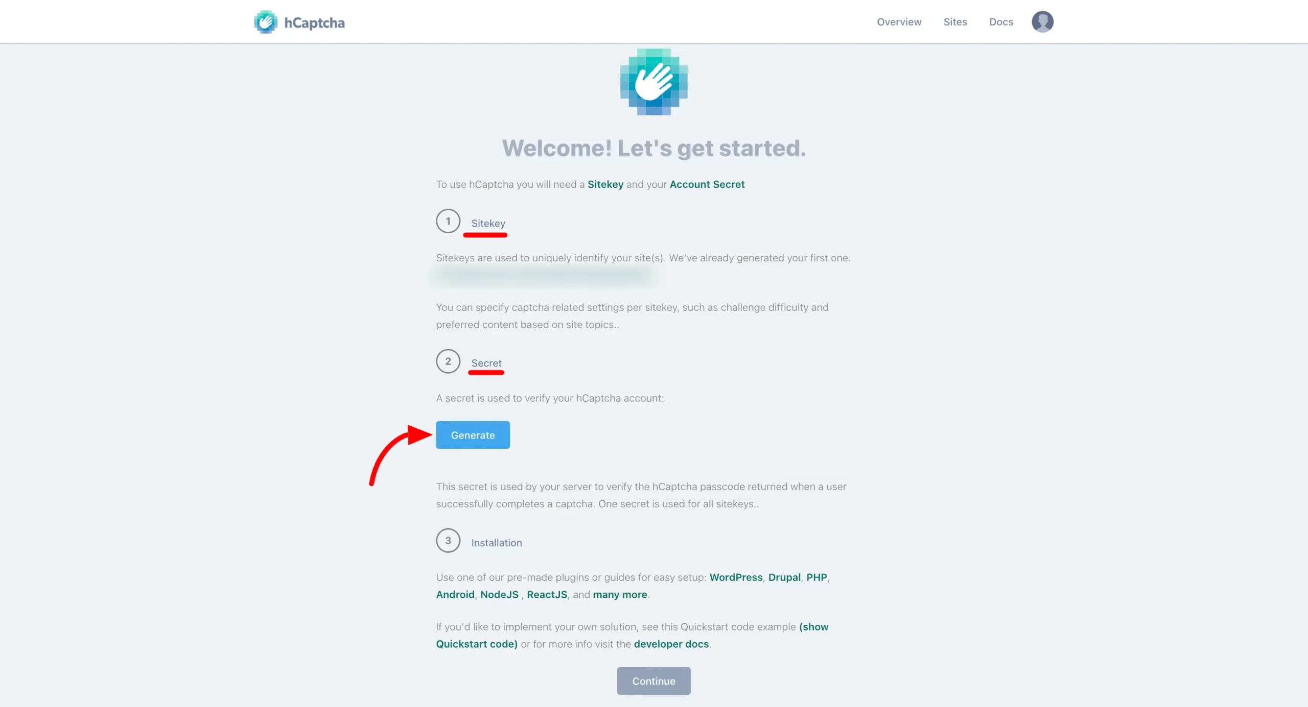 To integrate hCaptcha you’ll need a Site Key and a Secret Key from hCaptcha by following the below steps-