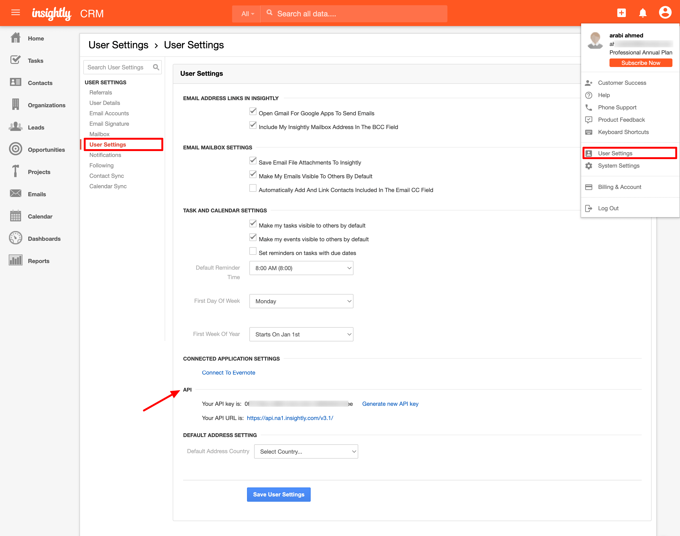 2. Get your Insightly API URL & API Key