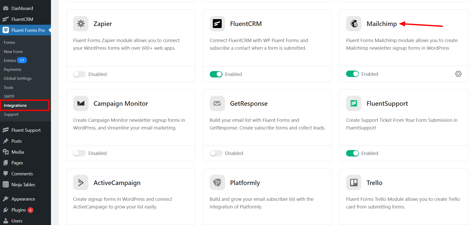 4. Integrations Available in Fluent Forms
