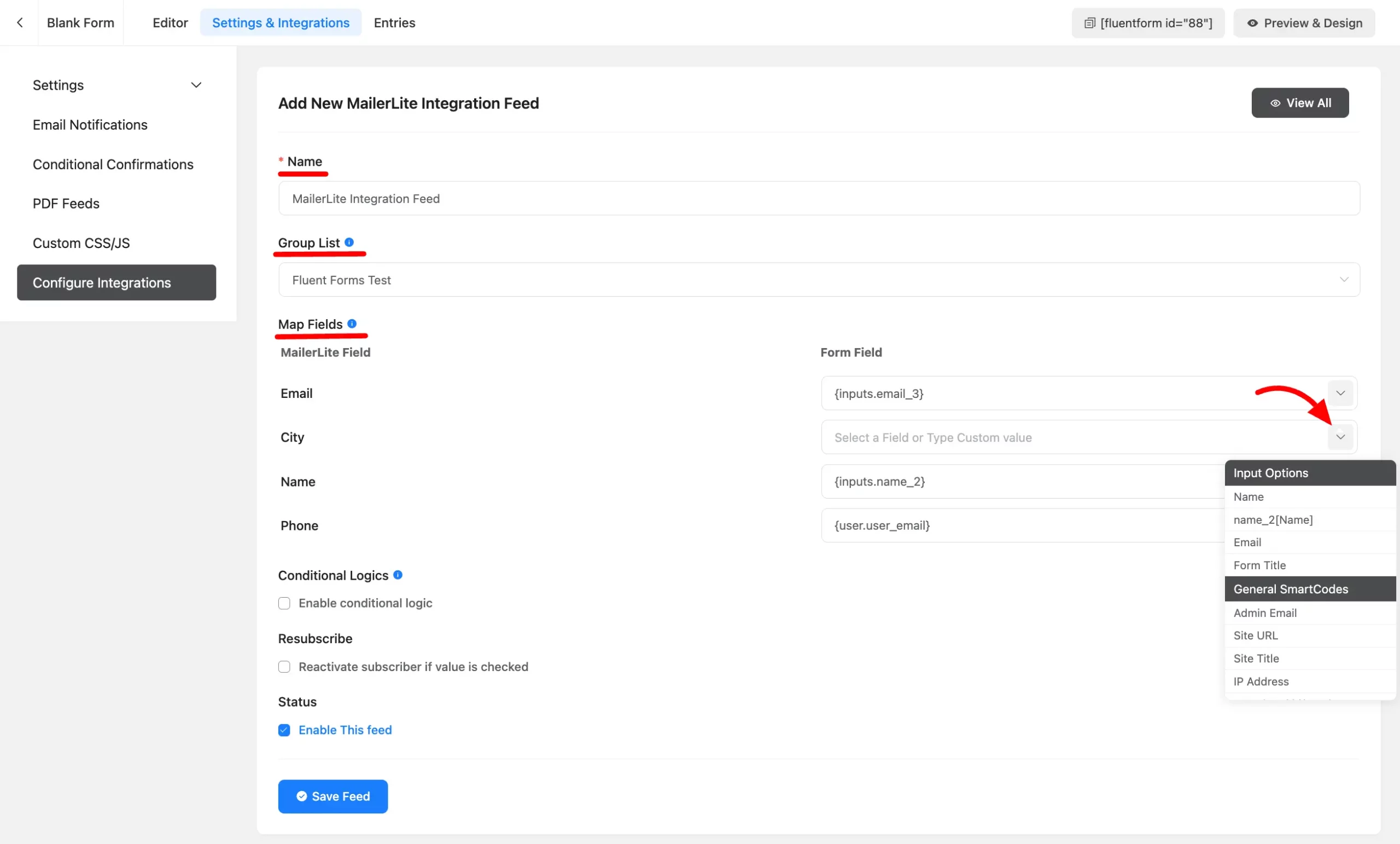 - Setup the integrations feed & Map the input fields