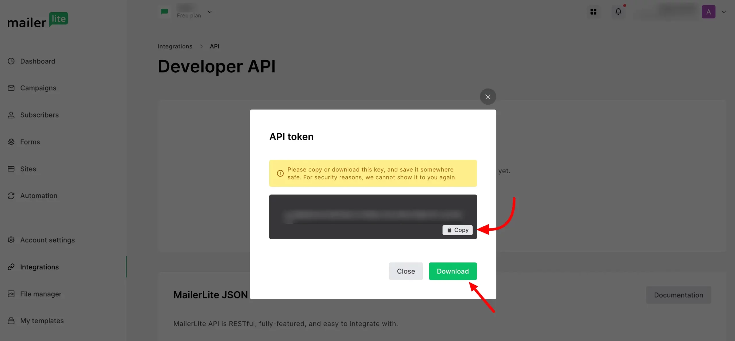- Get the MailerLite API Key