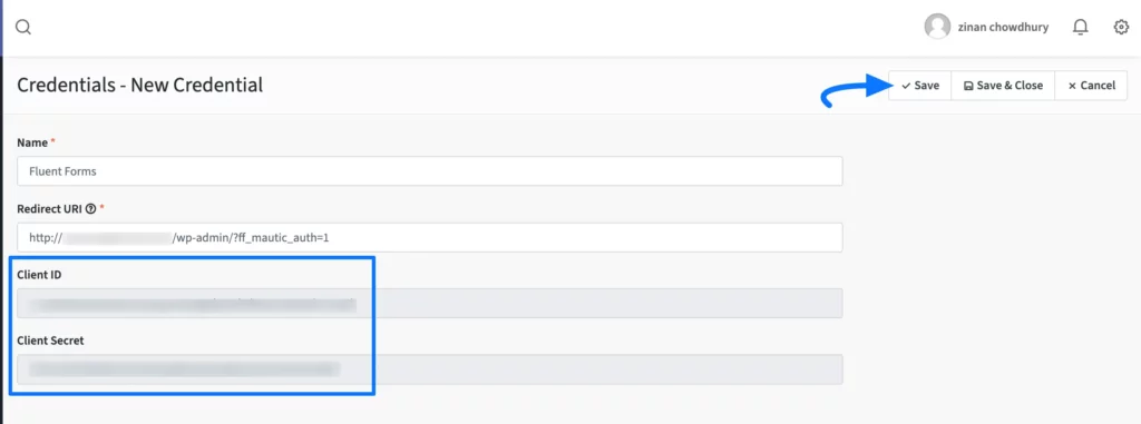 Finally, you will get your required Client ID and Client Secret. Copy them and press the Save button to save all the Mautic API Credentials.