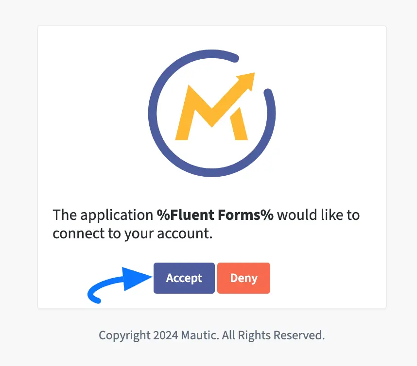 Finally, click the Accept button to permit Fluent Forms to connect with your Mautic Account.