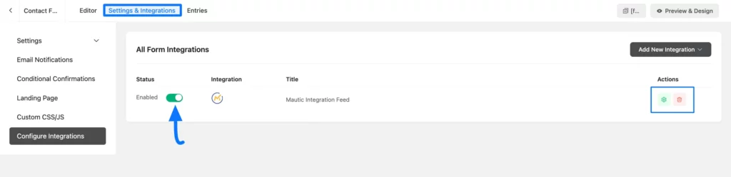 To learn how to add the Mautic Integration feed in a specific form to list its entries in Mautic, follow the steps with the screenshots below –