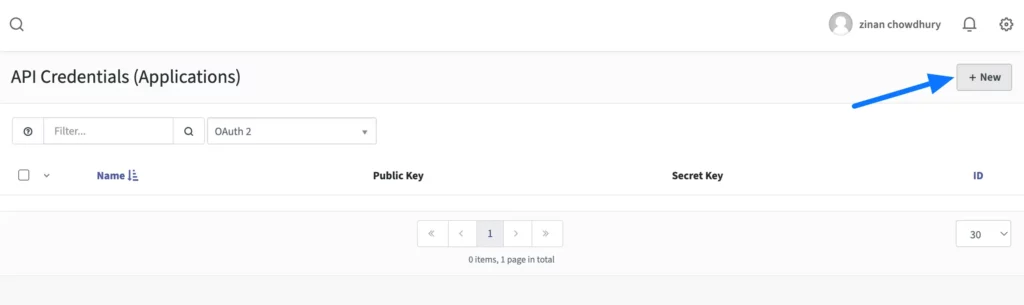 Click on the New button to create a new API Credentials.