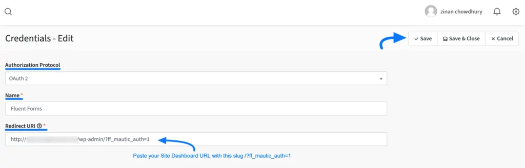 Now, under Mautic Settings, provide all the required credentials (Mautic Account URL, Client ID, and Client Secret).