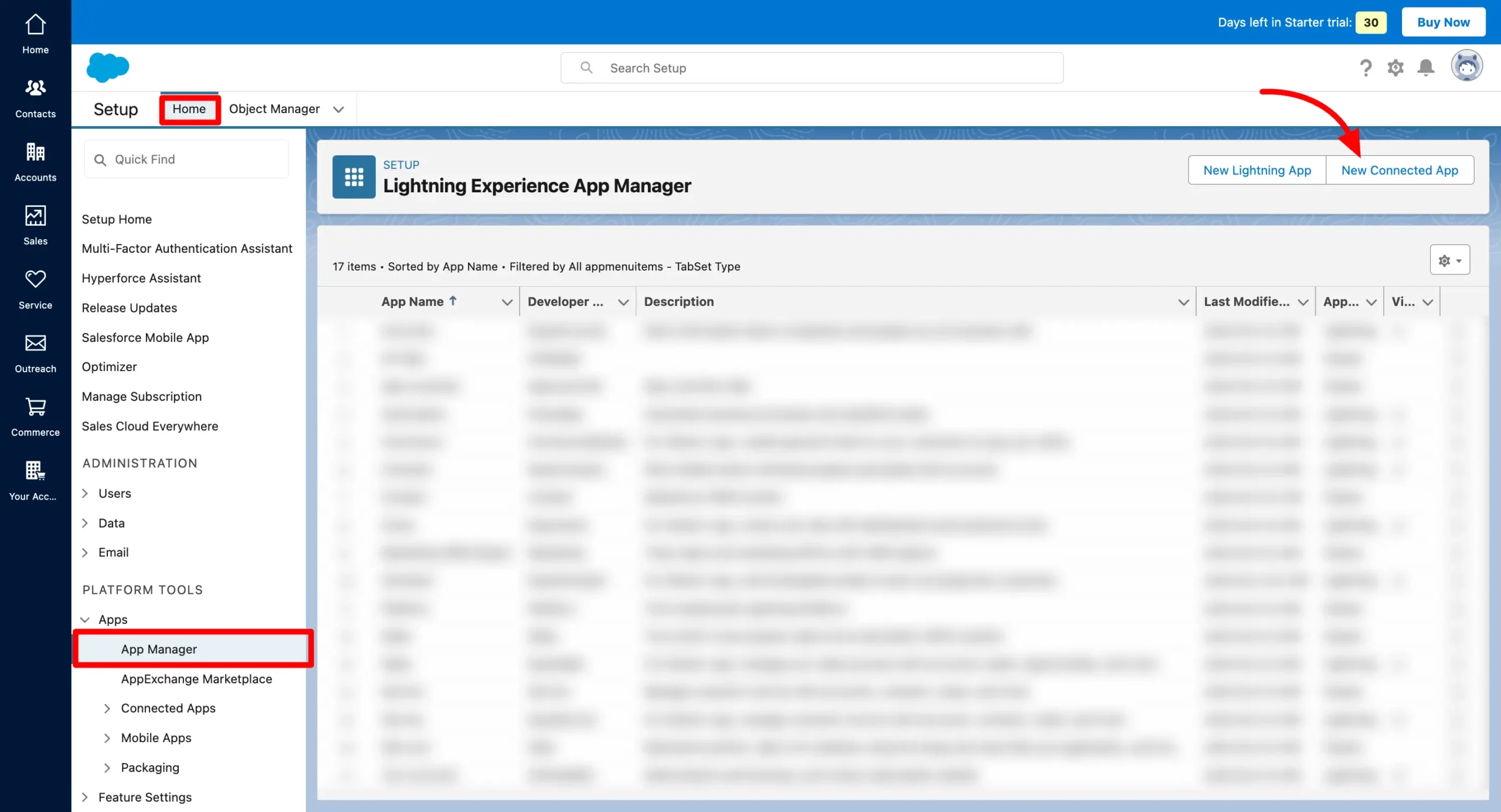 - Select the App Manager from the left sidebar and click on the New Connected App button.