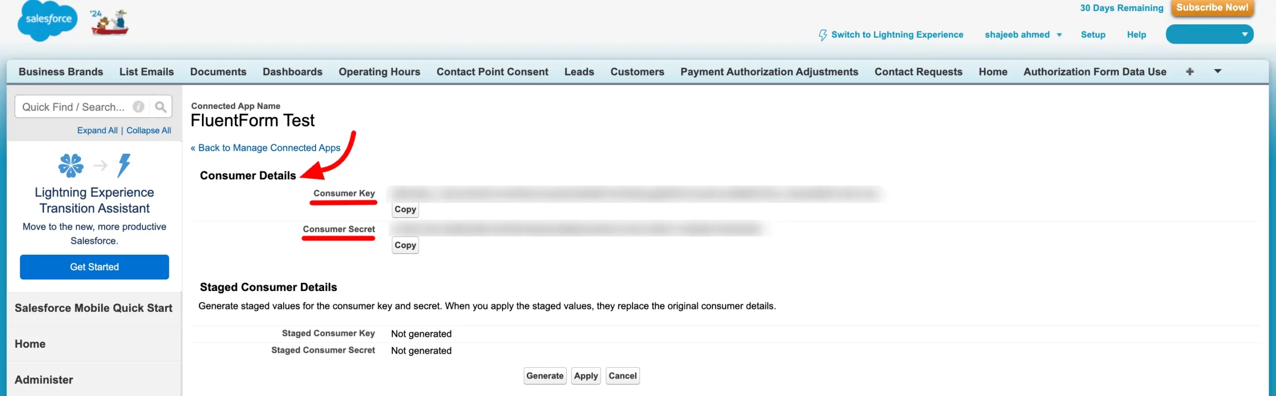 - Get your Salesforce Domain URL, Consumer Key & Consumer Secret