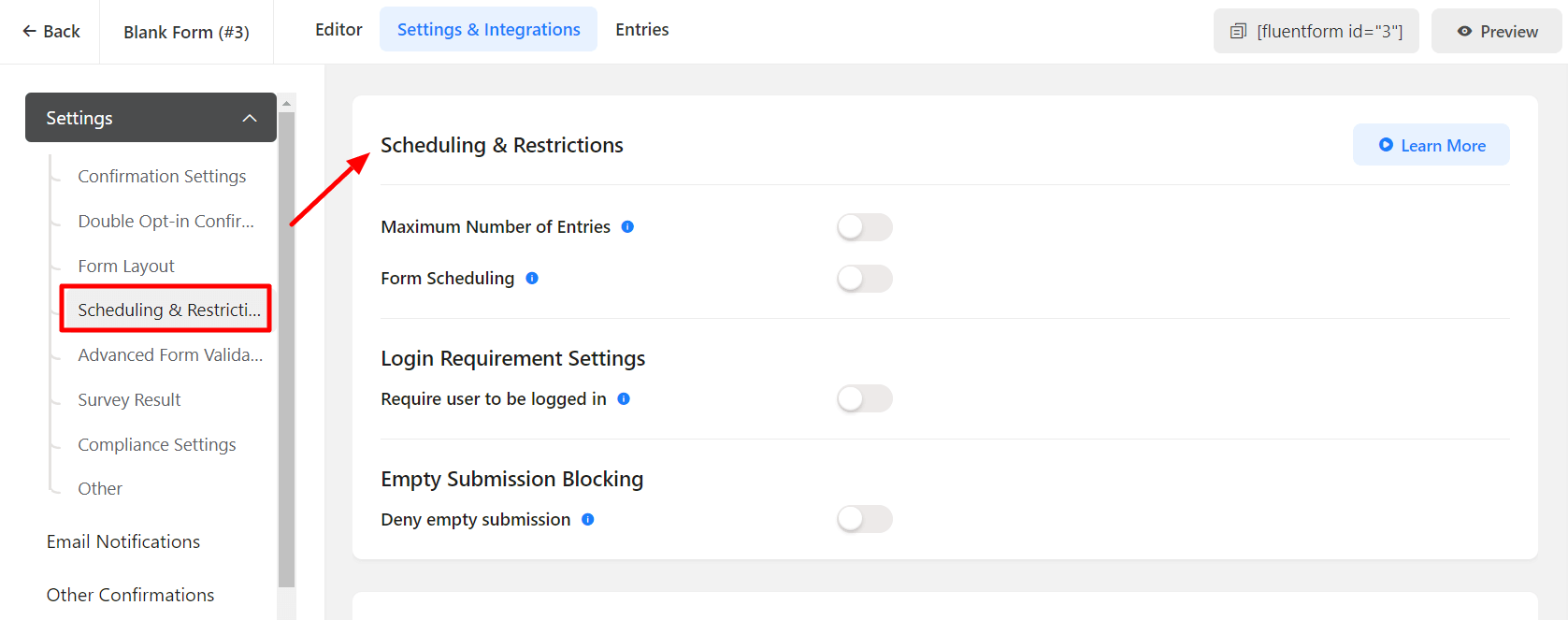 - Then move to Form Settings → Scheduling & Restrictions (below Form Layout)