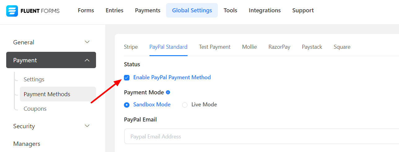 You can now easily integrate PayPal into your Fluent Forms dashboard.