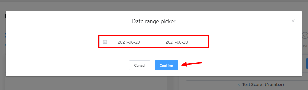 You can select the date range if you want to generate the chart by date range. A pop-up window will appear after turning on the Date range picker. So, here you need to enter the Start Date and End Date, then click Confirm.