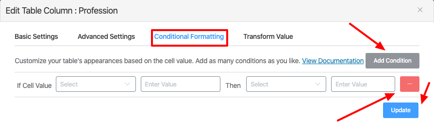 With this feature, depending on the cell value of the table, you can configure the design of your table. Read this guide to learn how to apply this feature.