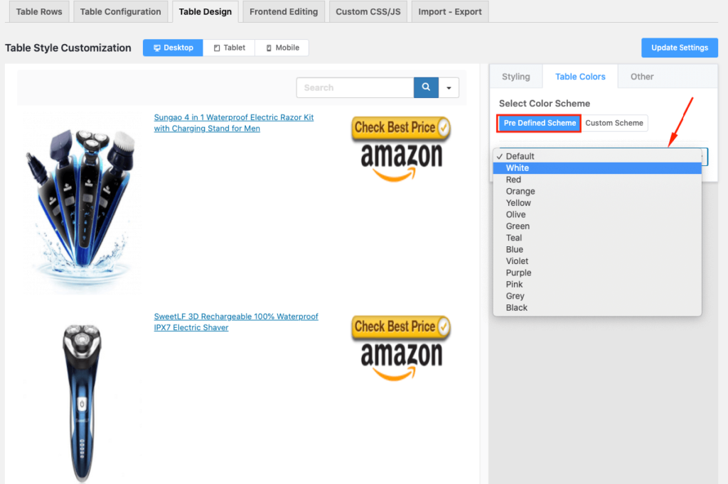 For example, you can change the color scheme & you can also change color by section “Table Colors” as you want. Click the “Predefined Schema” option to customize. So two color boxes appear for the background and text color respectively, with the name primary color and secondary color. These are the plugin’s additional functions.