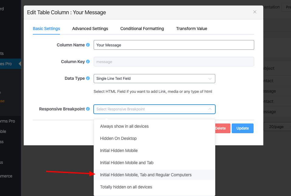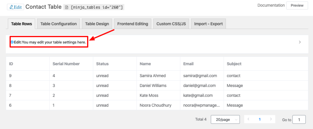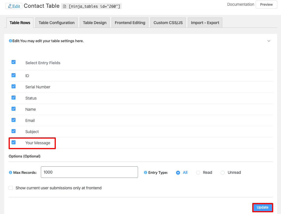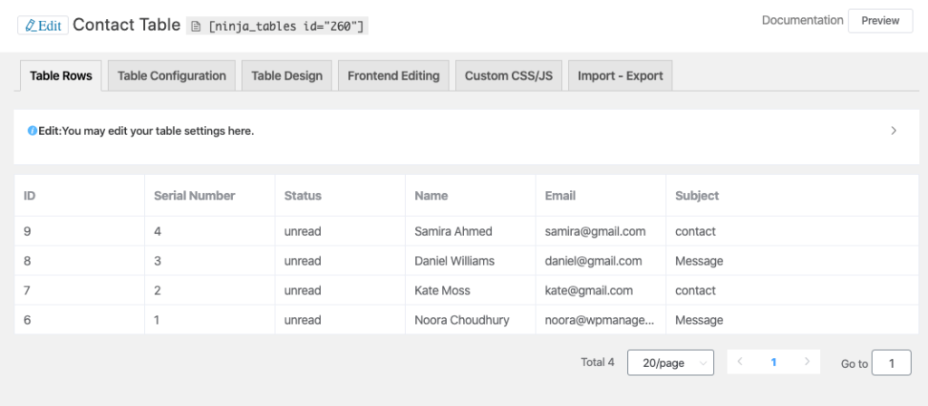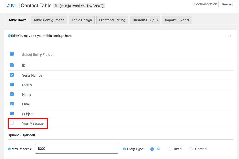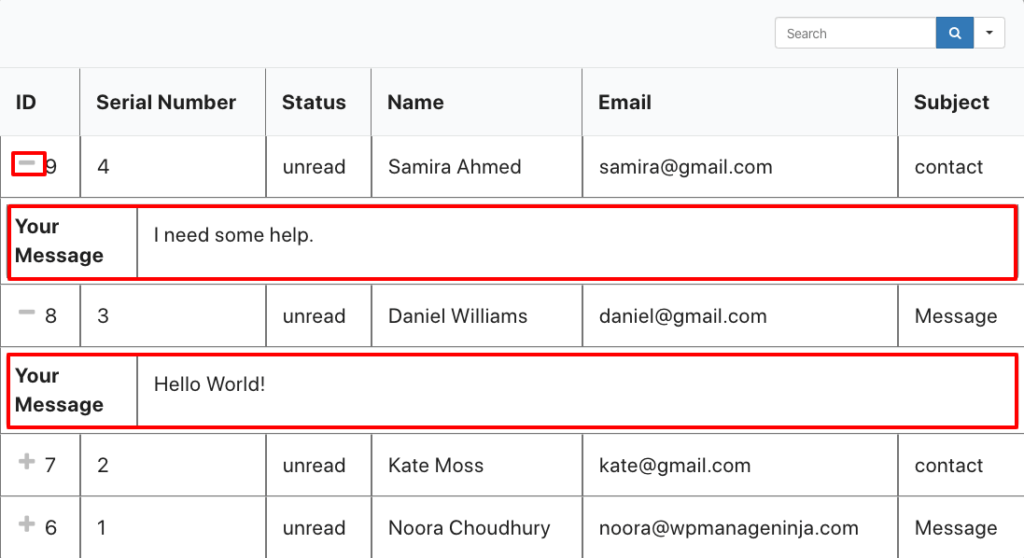 However, along with the “Your Message” column, it’s looking a little bit messy. Ninja tables have solutions for a cleaner look.