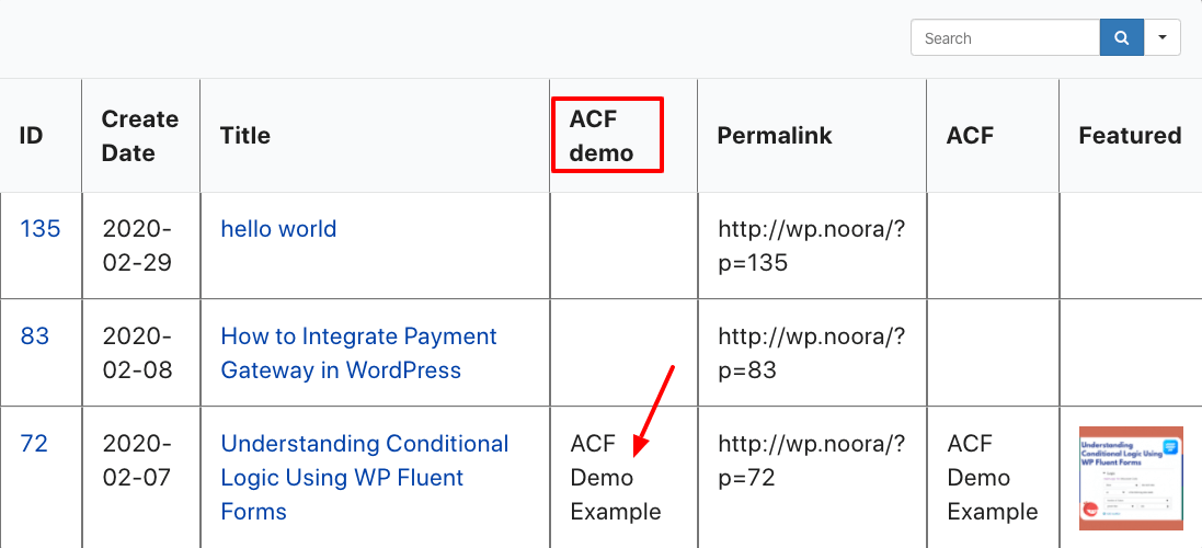 ACF Field is a versatile feature offered by Ninja Tables that improves the capacity of table creation. In this case, ACF means Advanced Custom Field which enables the table created to be more dynamic. This feature is available when the WP Post feature is used in the tables.