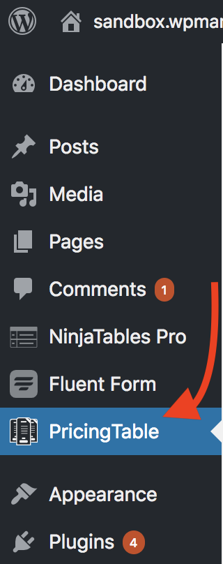 Creating a pricing table for Divi theme is as simple as other pricing table creation. In this case, I am using a beautiful WordPress plugin named Pricing Table Builder plugin. First of all, you have to download and install the plugin on your site. Then make it active and open the plugin by clicking on the plugin title located in the left sidebar of the dashboard.