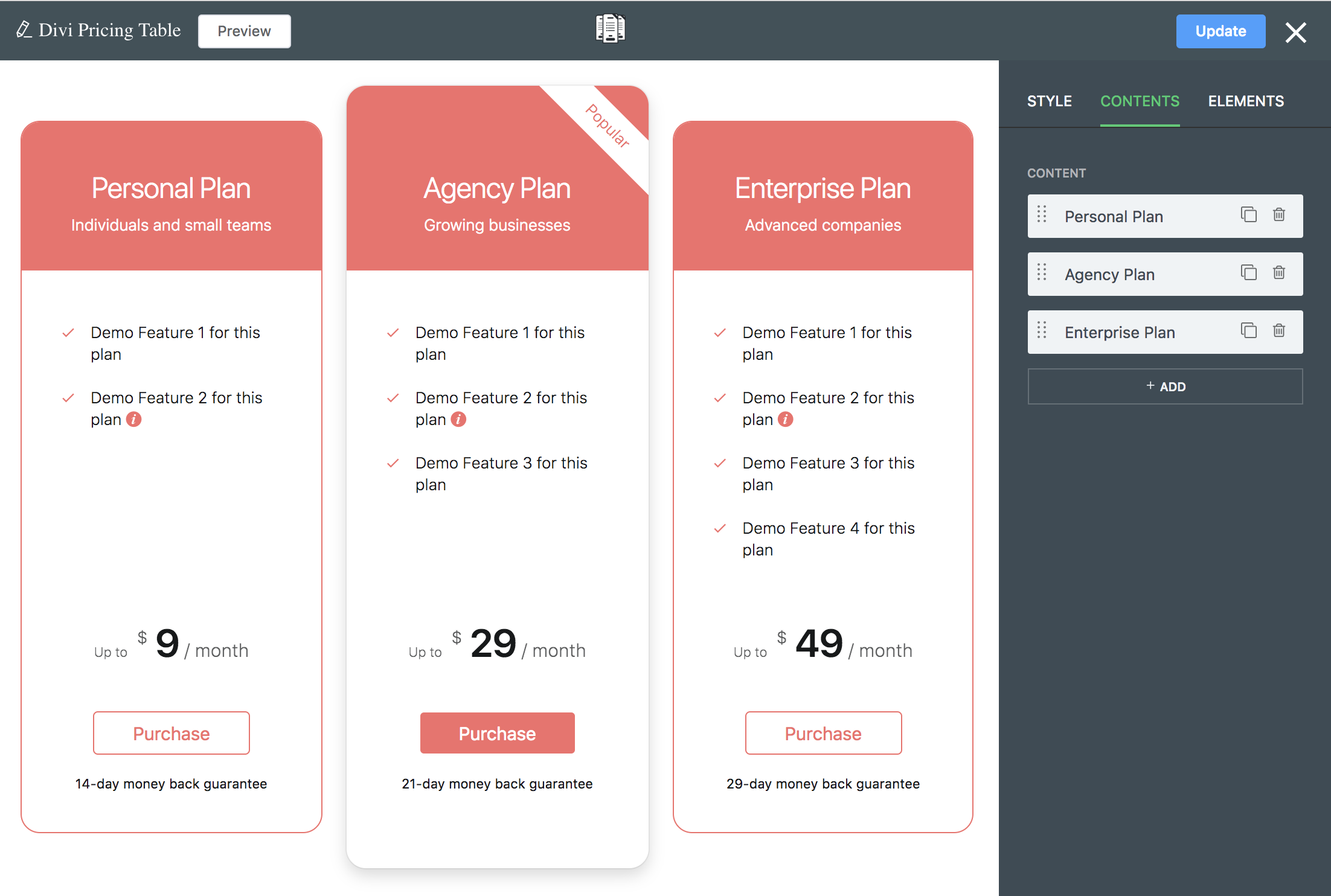 To download the Pricing Table Builder click here. To learn more about Divi Theme, just click here.