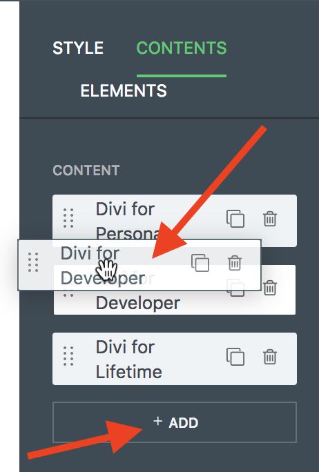 You also apply drag and drop for rearranging the content column. If you want to add something, you can do this easily by clicking on the plus(+) icon located on the bottom.