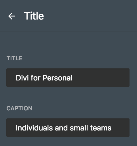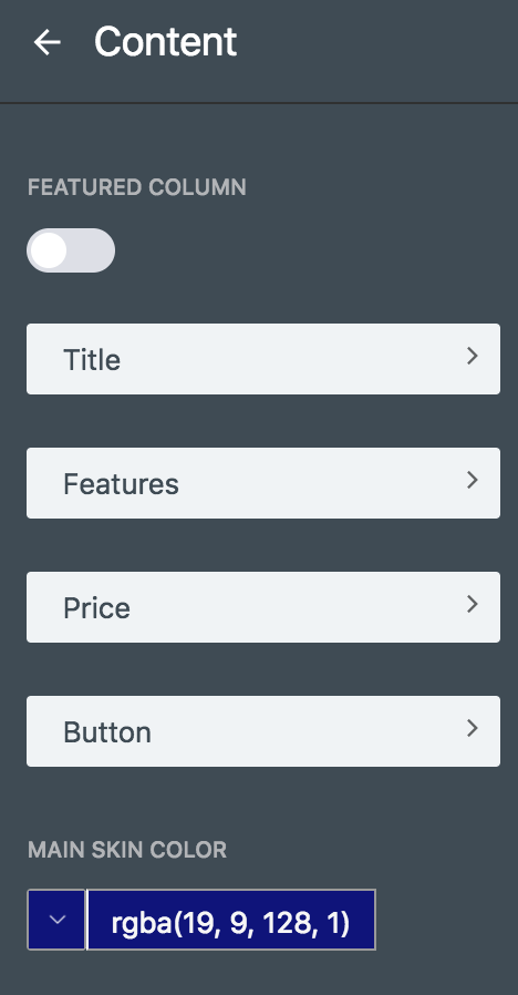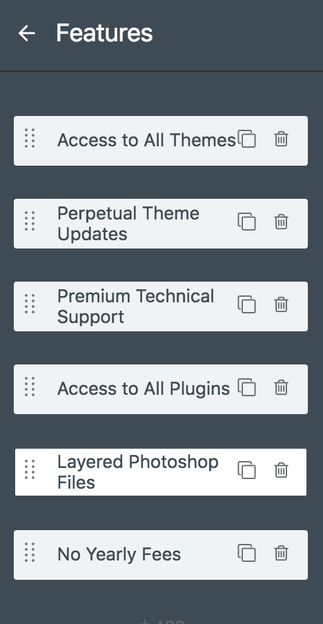 There are several options there for a specific customization. For the title, you can click on the Title option, for the features you can click on the Features option. Same things happen for the rest of the options.