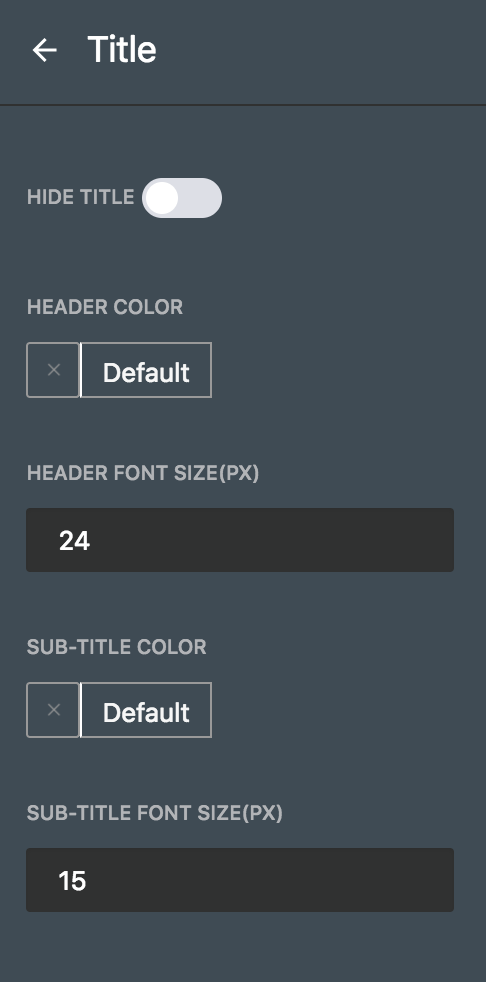 You can hide the title, you can change header color and font size. At the same time, you can customize the sub-title by changing the color and font size of the sub-title.