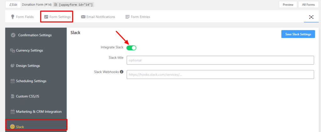 You can integrate your Slack account with your WPPayForms to make team sharing easier. Here you will have a clear idea of how to make a slack integration with WPPayForms.