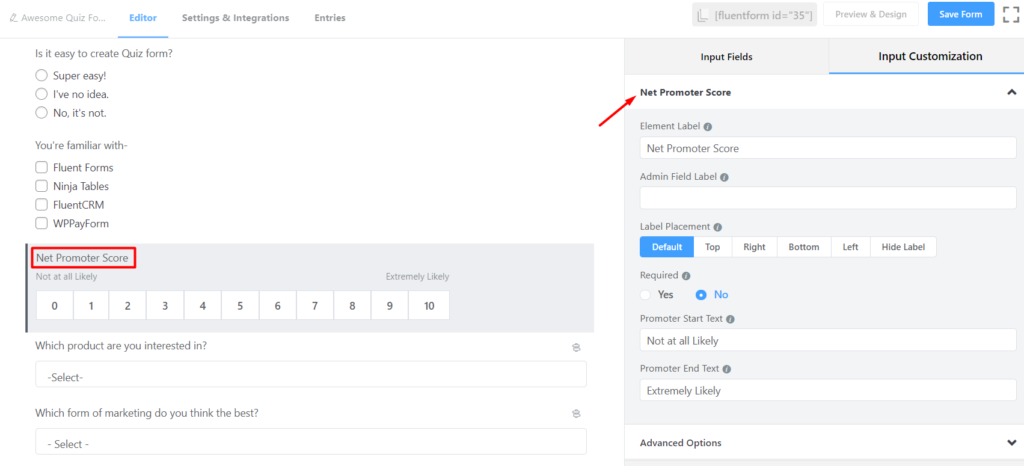WP Fluent Forms Net Promoter Score Input Field: