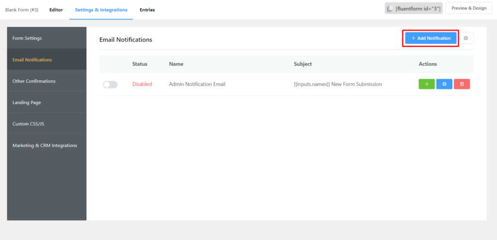 Also, you can notify your users via email without any hassle. Go to Settings & Integration first and then go to Email Notification from the sidebar. Click on the Add Notification on the right.