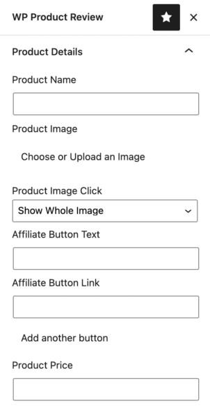 Give the product a name and upload an image of it. Add affiliate link, text for the affiliate button, and product price.