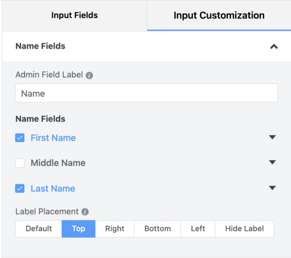 When you click the edit icon, it will take you to the customization option. From there, you can change element labels, label placement, and placeholder text. Also, you can mention if any particular field is mandatory.