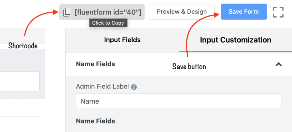 It’s also possible to reuse the form on multiple pages by using the shortcode. You can see something like fluentform id=”#”. Copy the code and place it wherever you want to display that form. To copy it just click over the code!