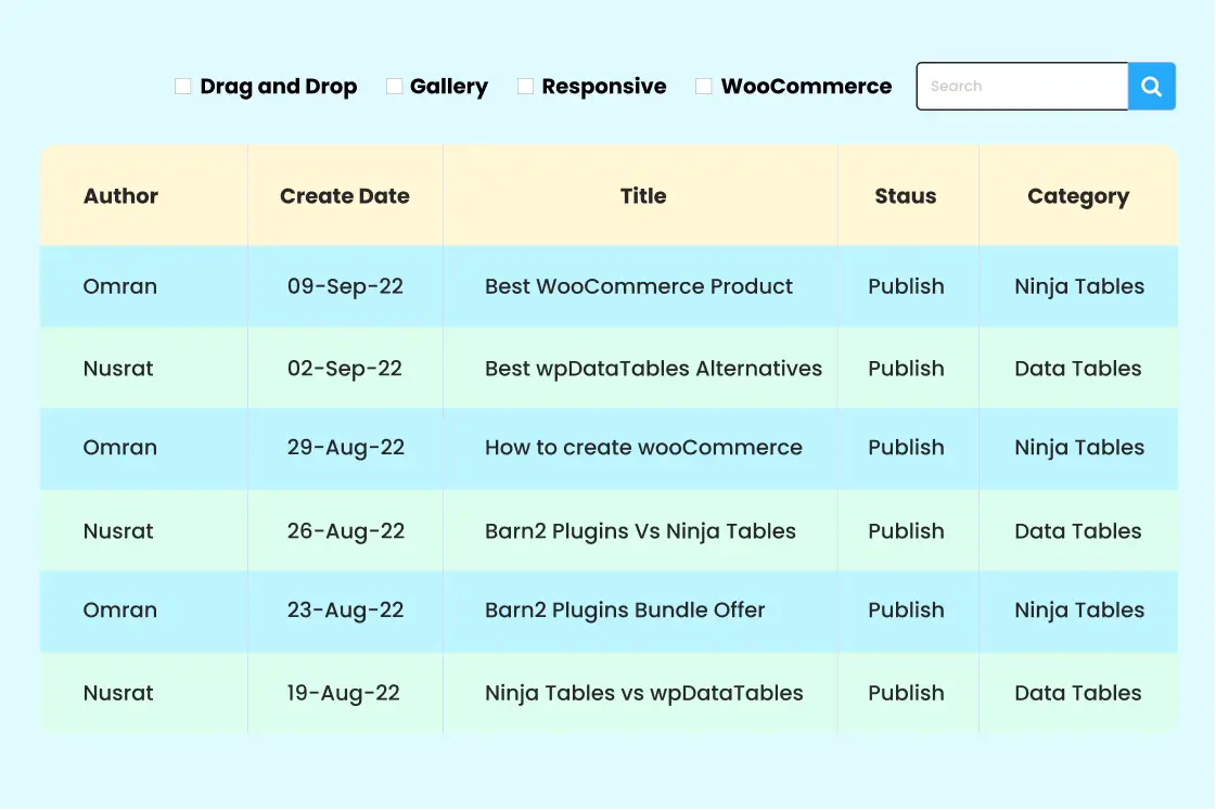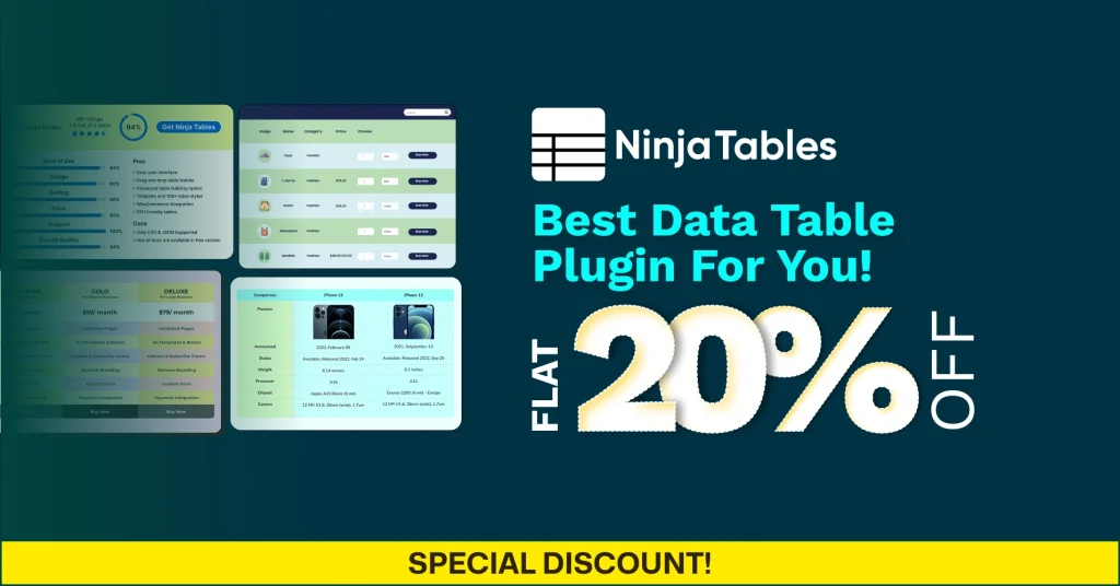 A user-friendly layout, full customization control, multiple third-party integrations, and a smart tabular format- you get all these and MORE from Ninja Tables!