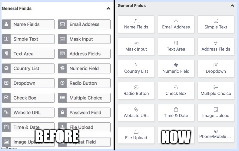 Moreover, there is also a bit of change in the editor section. Previously, it was a yellowish background sign for the selected item in the form editor. Likewise, the input field button, the above change in the text editor, is made up for a better visual appeal that enhances the appearance of the selected field.