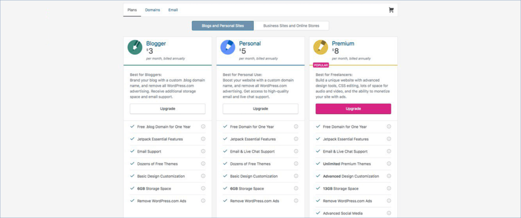 - To keep a website alive, you need a hosting where you will have to store all your files. With wp.com, you will get up to 3GB of space and if your site needs more space then you have to pay for it. However, a blogger can begin with wp.com’s option until they made some reputation.